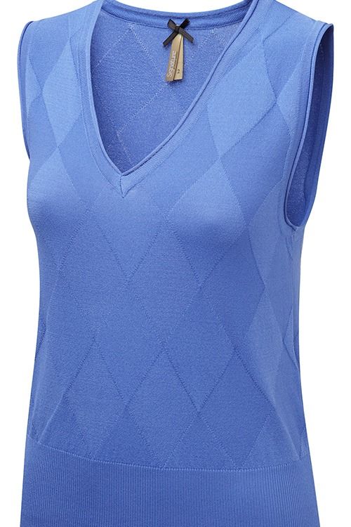 This classic tank top is a wardrobe favourite. It has a smart diamond jacquard motif on the front & back.  Pair with one of our blouses for a great corporate look!