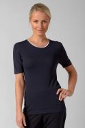 Every woman's wardrobe requires beautiful classics that are well made and stylish. Gemma is a semi-fitted knitted undersuit Top with short sleeves. The flattering round neckline and contrast trim pairs well with our Jessica cardigan to make a smart twin set.